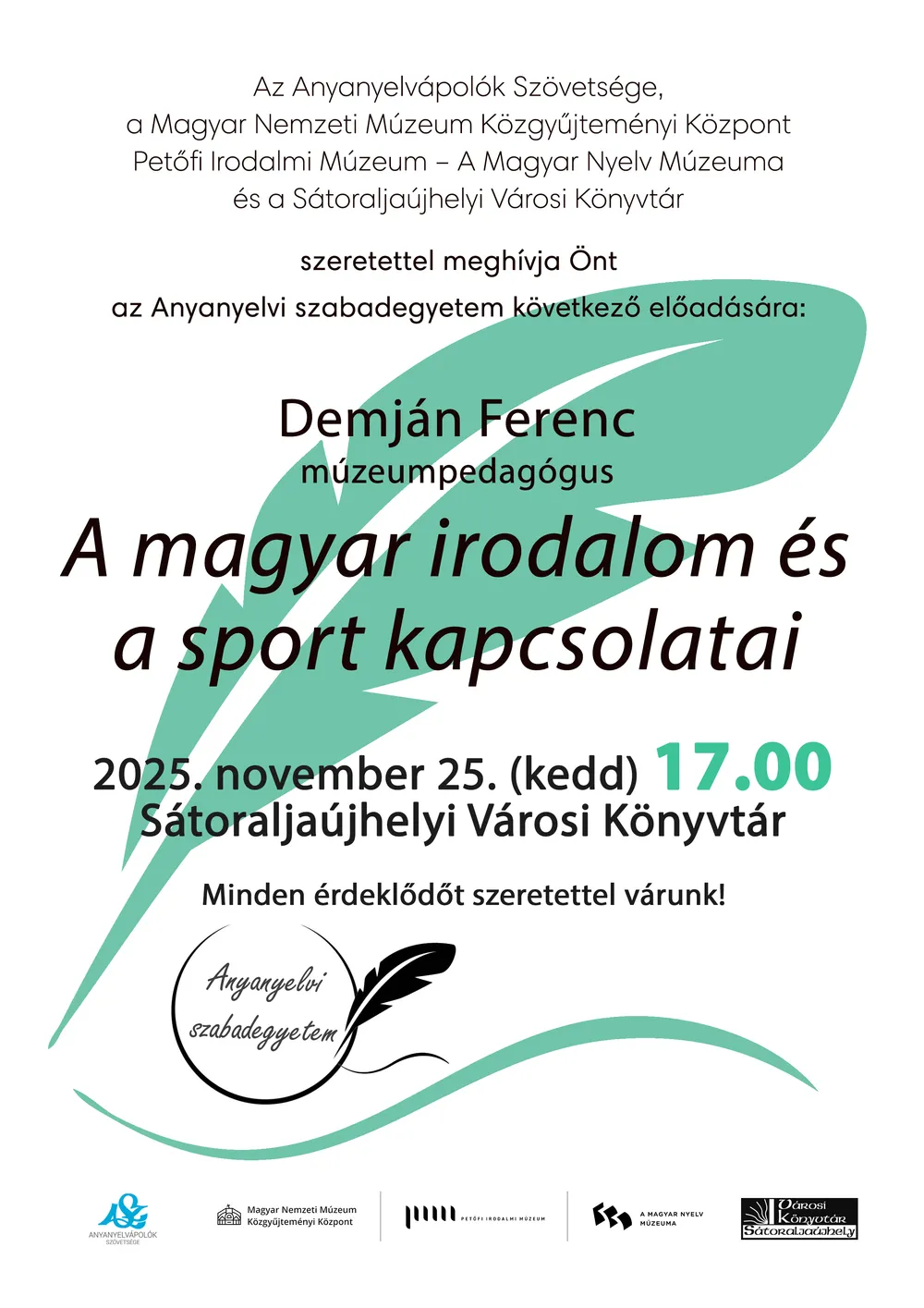 25nov17:0018:00A magyar irodalom és a sport kapcsolataiAnyanyelvi szabadegyetem